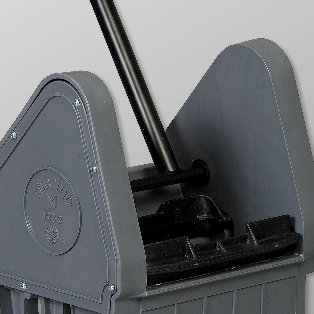 Cette essoreuse à pression vers le bas est moulée par injection avec un polymère haute densité. Sa surface lisse, solide et durable est facile à nettoyer et à désinfecter. À la différence des essoreuses en mousse plastique, notre essoreuse n’offre aucun terrain fertile pour la prolifération de bactéries. Les éléments et les plaques de pression sont en nylon renforcé de fibres, ce qui permet une utilisation silencieuse et tout en souplesse. L’essoreuse est conçue pour essorer efficacement tous types de vadrouilles humides allant de 340 à 900 g (12 oz à 32 oz).